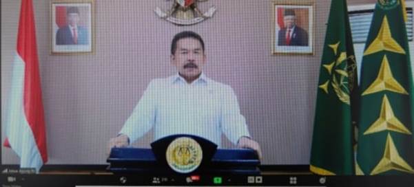 Jakarta, BARITOPOST.CO.ID – Jaksa Agung RI Burhanuddin selaku Pelindung Persatuan Jaksa Indonesia (PJI) memberikan sambutan dan sekaligus membuka acara penyelenggaraan Musyawarah Nasional (Munas) Persatuan Jaksa Indonesia (PJI) Tahun 2021 secara virtual dari ruang kerja Jaksa Agung di Gedung Menara Kartika Adhyaksa Kebayoran Baru Jakarta Selatan. Kamis (16/12/2021).