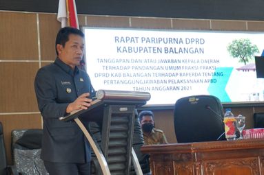 Anggota DPRD Balangan Muhammad Rusdin Barhiwan mewakili fraksi DPRD Balangan menyampaikan, ada beberapa yang menjadi catatan dari fraksi-fraksi berkenaan dengan pelaksanaan APBD Tahun Anggaran 2021.