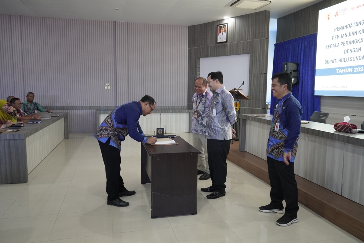 Bupati HST H Aulia Oktafiandi mengatakan bahwa perjanjian kinerja ini bertujuan sebagai terwujudnya komitmen untuk meningkatkan integritas, akuntabilitas, kinerja aparatur dan transparasi.