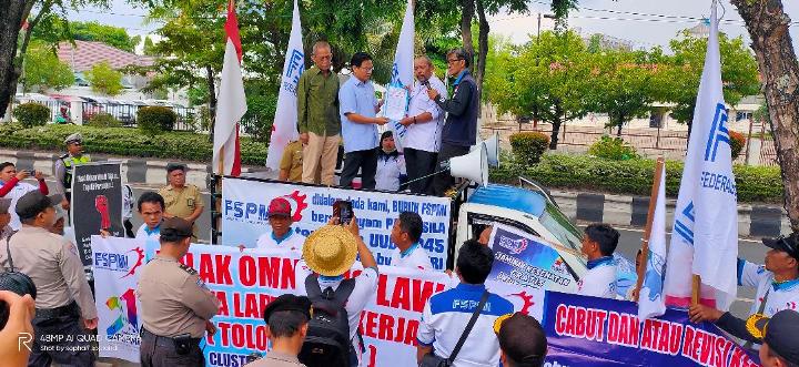 Dihadapan massa pengunjuk rasa, Firman Yusi berjanji pihaknya segera menyampaikan langsung aspirasi buruh yang menolak RUU Omnibus Law ini ke DPR RI sebagaimana sikap para buruh di Kalsel.
