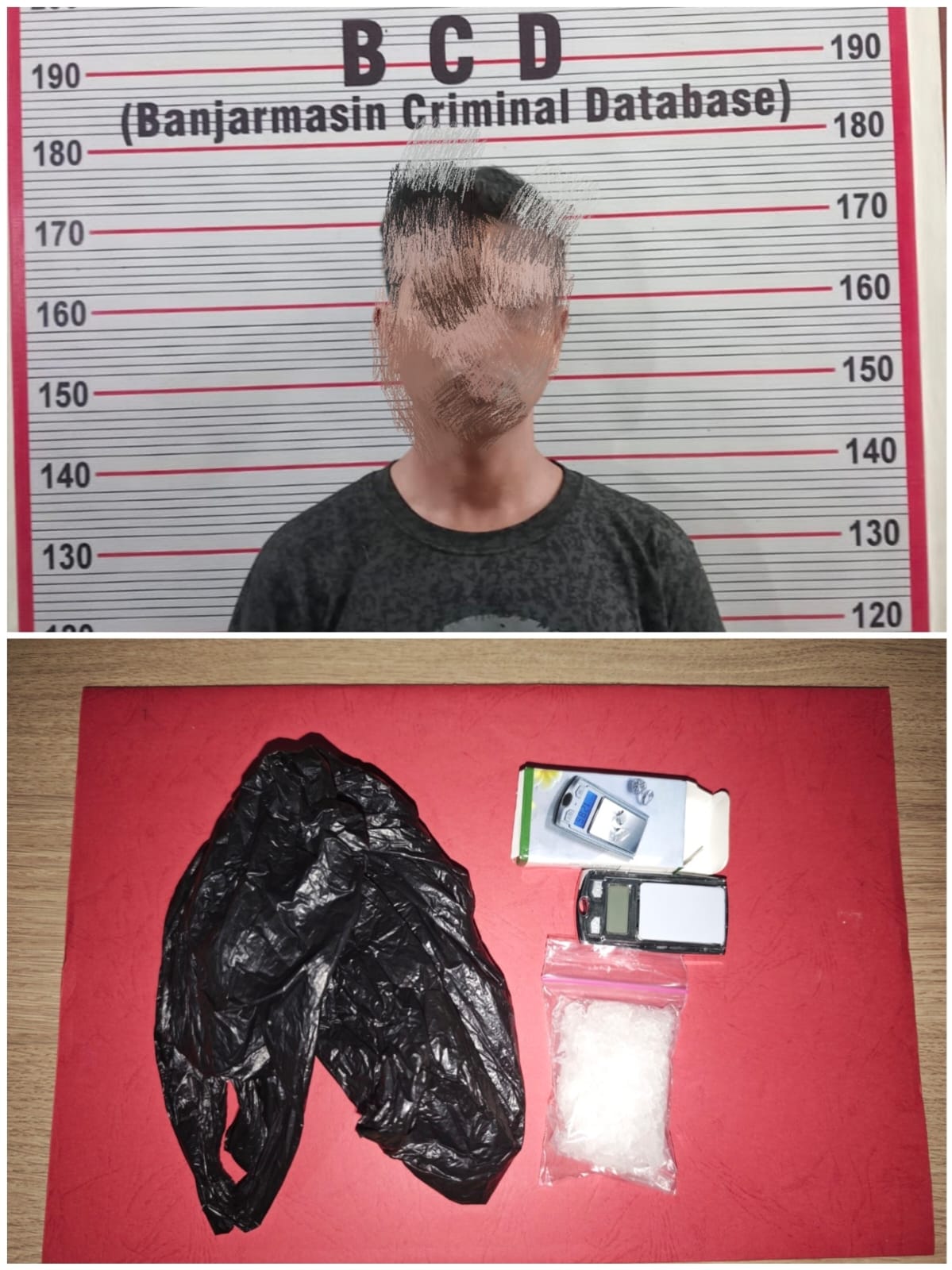 Warga Jalan Kelayan A II Gg. Palapa II Kelurahan Murung Raya Kecamatan Banjarmasin Selatan ini juga membawa satu Timbangan Digital merk SCALE lengkap dengan kotaknya. Termasuk satu kantok kresek warna hitam, selanjutnya pelaku digelandang ke Polsek setempat.