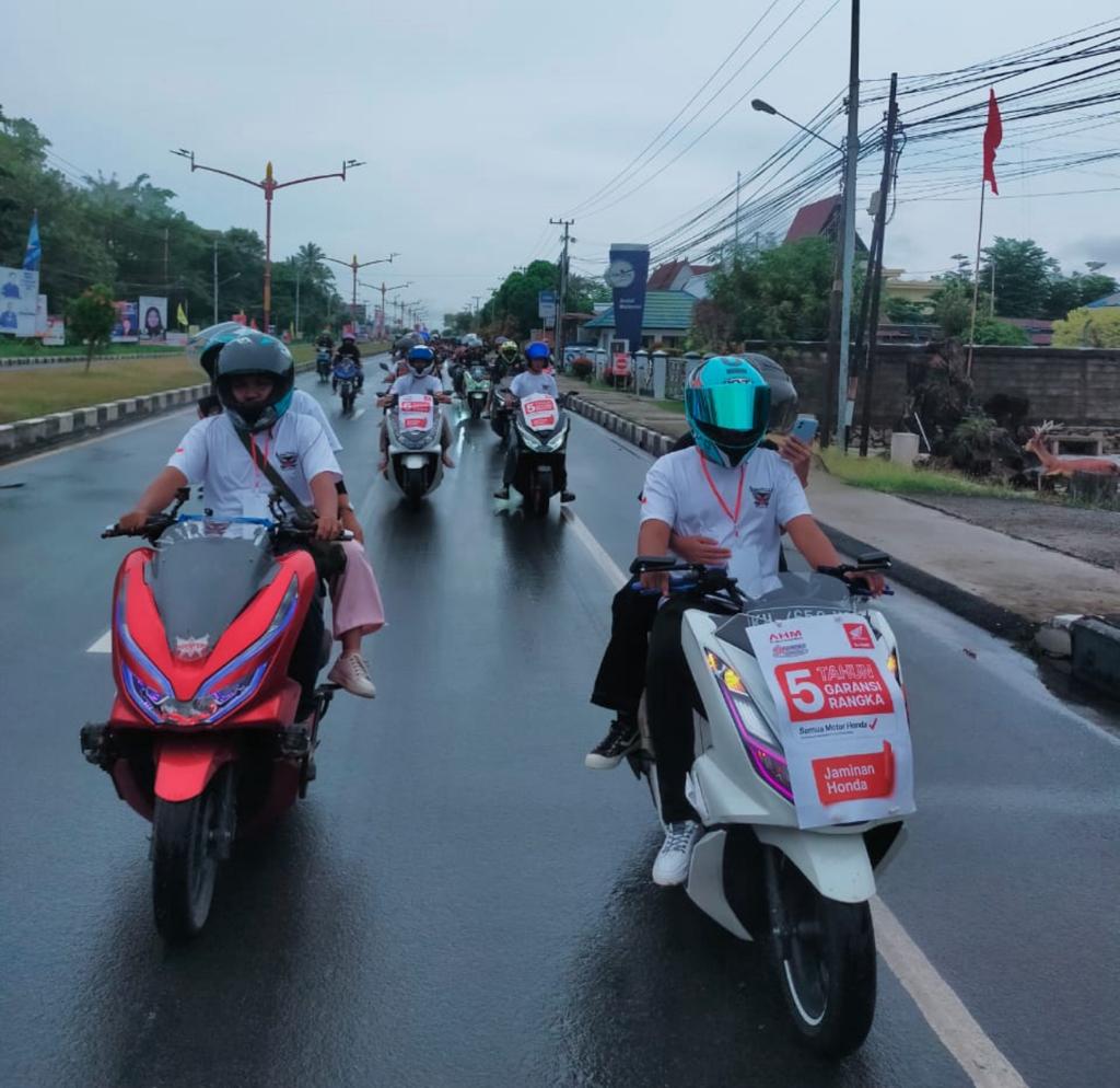 Puluhan anggota komunitas Honda PCX bersama karyawan internal Cahaya Indah Motor menggelar Rolling City dan berkeliling di Kota Palangkaraya dengan membawa atribut Garansi Rangka 5 Tahun Honda.