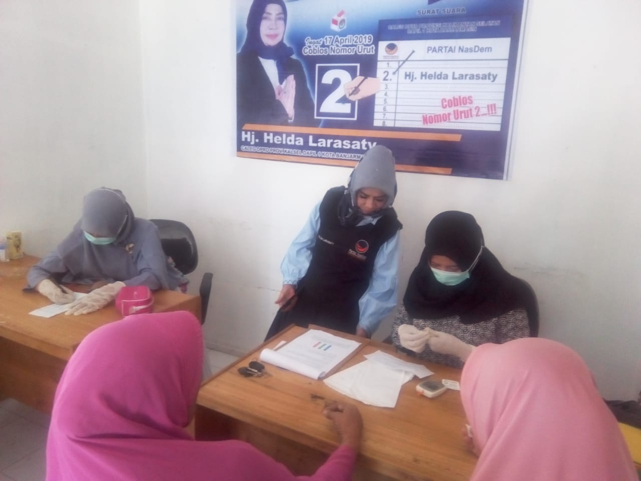 Banjarmasin, BARITO – Masyarakat sehat pemilu sukses, menjadi tagline dalam pemeriksaan kesehatan gratis yang digelar tim relawan Hj Helda Larasaty pada Sabtu (24/2/2019).