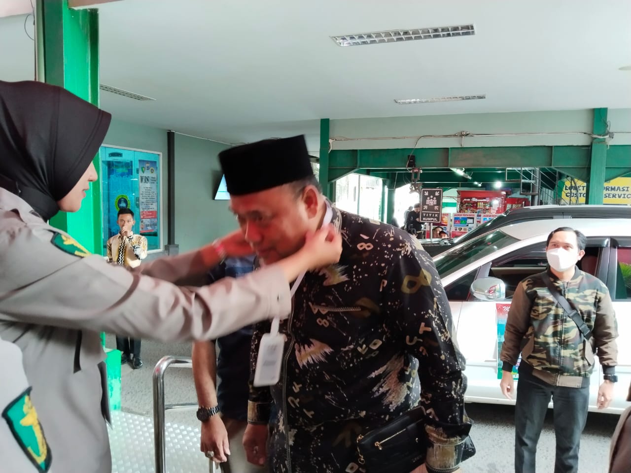 H Normansyah Calon Wakil Bupati Hulu Sungai Utara (HSU) jalani Pemeriksaan Kesehatan datang ke RS Bhayangkara Banjarmasin, Jumat (30/2024). Pasangan Surya Iman Wahyudi sebagai Calon Bupati HSU itu datang disambut oleh pihak RS Hoegeng Imam Santoso milik Bid Dokkes Polda Kalsel.