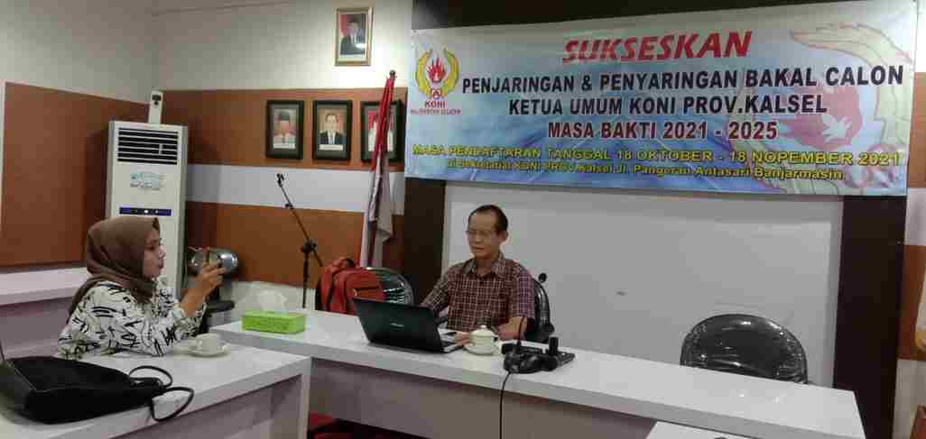 Banjarmasin, BARITO – Hingga H-1, calon Ketua Umum KONI Kalsel belum ada yang menyerahkan blangko pendaftaran. Padahal pendaftaran sudah dibuka sejak 18 Oktober sampai 18 Nopember 2021.