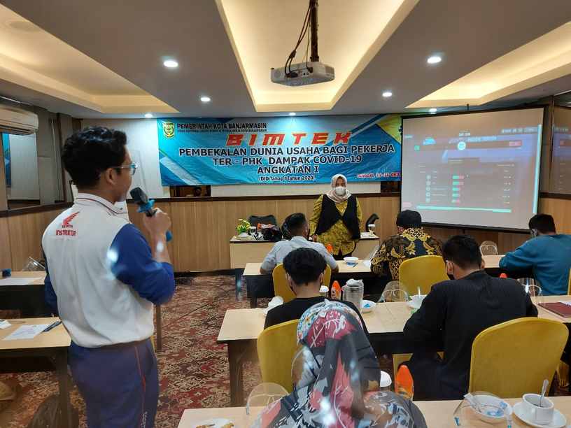Kegiatan yang diselenggarakan di Pyramid Suites Hotel Banjarmasin dan diikuti oleh 30 orang peserta dengan menerapkan standar protokol kesehatan ini diikuti dengan antusias oleh para peserta yang rata-rata memilih untuk memulai untuk berwirausaha setelah mengalami PHK akibat pandemi Covid 19.