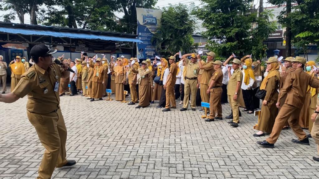 Seluruh jajaran ASN di lingkup Kecamatan Banjarmasin Barat gelar apel dan sekaligus penandatanganan dalam pembangunan zona integritas menuju WBK dan wilayah birokrasi bersih melayani (WBBM), Selasa (2/1/2024).
