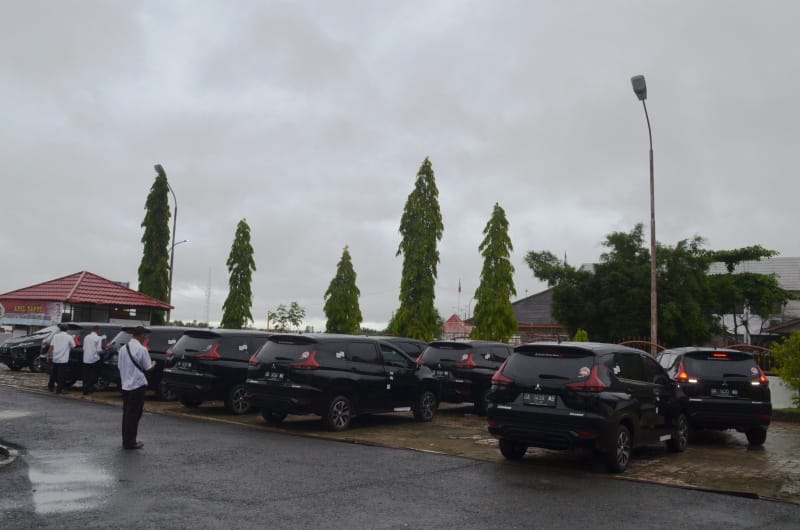 Bupati Batola Noormiliyani AS secara simbolis menyerahkan kunci mobil dinas baru untuk operasional para camat guna menunjang operasionalnya di lapangan, merek Mitshubishi Xpander warna hitam.
