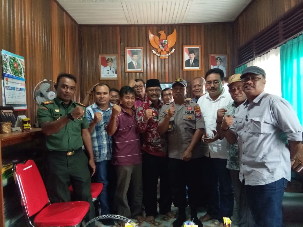 Usai rapat musyawarah, camat Parenggean Siyono (kopiah hitam) bersama aparat di kecamatan dan PBS serta pengusaha lokal kecamatan Parenggean. (zainal/brt).