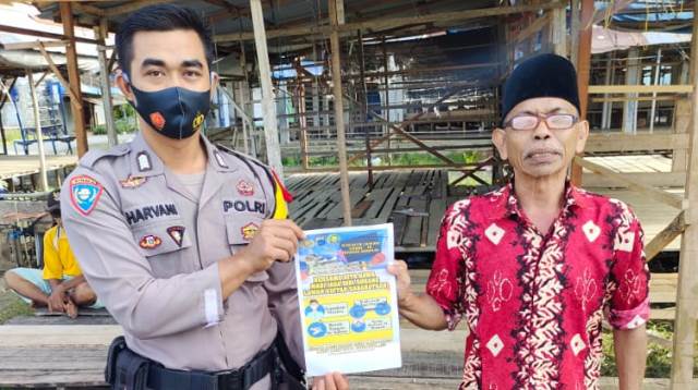 Polres Tanah Bumbu, Polda Kalsel – Sehubungan dengan merebaknya penyebaran wabah virus corona (covid-19) di Indonesia dan sebagai upaya peningkatan kewaspadaan serta pencegahan meluasnya wabah virus covid-19. Untuk antisipasi dan pencegahan virus corona Bhabinkamtibmas Polsek Karang Bintang Bripka Harvani melakukan himbauan kepada warga binaannya, Rabu (30/12/2020).