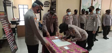 Sebelum melaksanakan penandatanganan, personel lebih dulu melakukan Apel Pagi Jam Pimpinan.