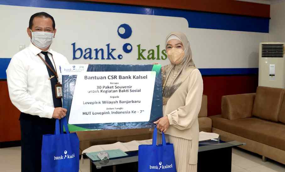 Bank Kalsel memberikan 30 bingkisan bagi 30 ibu-ibu yang menjalani pemeriksaan. Bingkisan secara simbolis, diserahkan oleh Kepala Divisi Corporate Secretary, Suriadi, kepada Ketua Lovepink Wilayah Banjarbaru, Nevyta Febrain Sari di Kantor Pusat Bank Kalsel, Banjarmasin (12/7/2021).