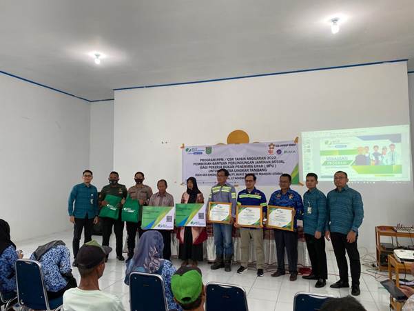 CSR tersebut disalurkan dalam bentuk Perlindungan Jaminan Sosial terhadap 450 Pekerja Rentan atau Bukan Penerima Upah (BPU).