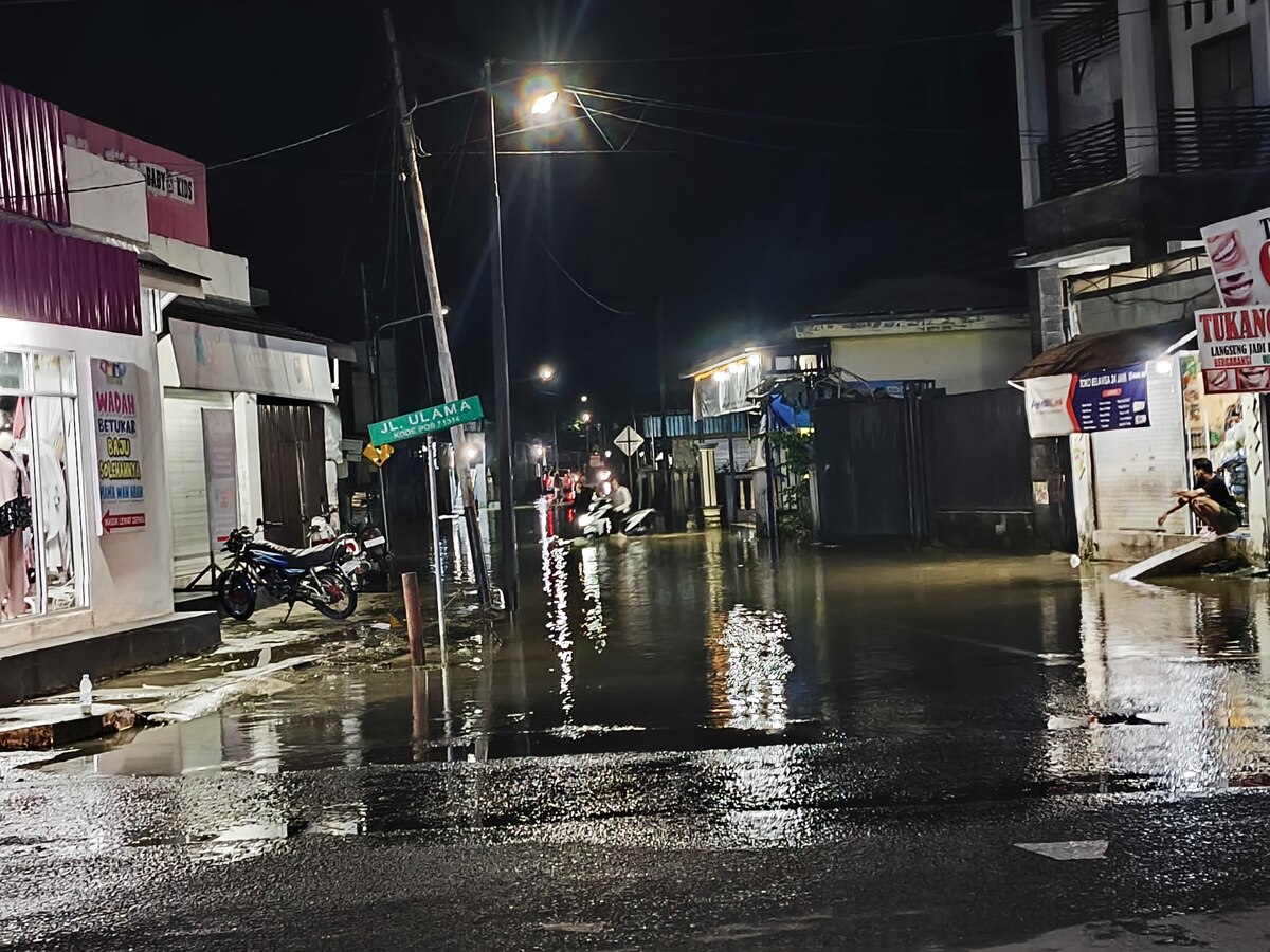 Pantauan baritopost.co.id di lokasi, beberapa titik yang terkena banjir, seperti di Jalan Pasar Tiga, Jalan Ulama.