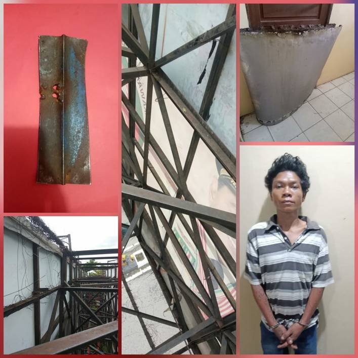 Banjarmasin, BARITO – Seorang pria bernama Suriyadi (36) yang diduga mencuri plat alumunium dan besi plat baleho dibekuk polisi, Sabtu (11/1/2020) pagi sekitar pukul 11.45 Wita. Tersangka yang beraksi di Jalan S Parman depan Cafe Capung Kelurahan Antasan Besar Kecamatan Banjarmasin Tengah itu diketahui saksi bernama Sukma.