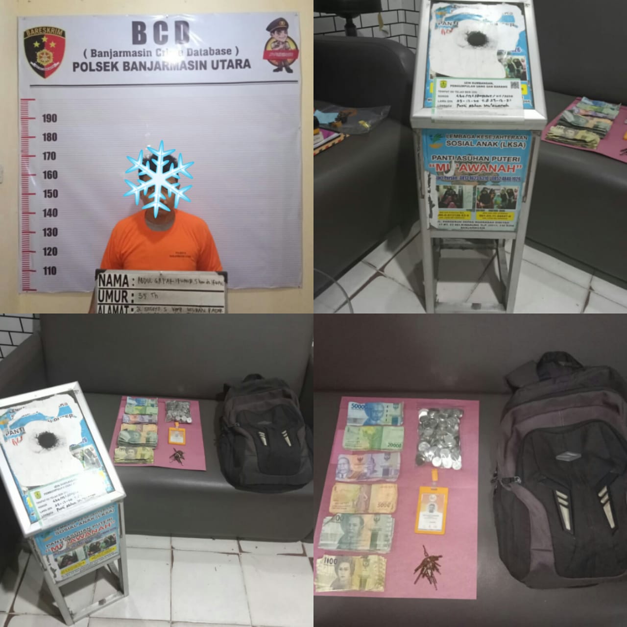 Banjarmasin, BARITOPOST.CO.ID – Pelaku pencuri uang kotak amal Panti Asuhan Lembaga Kesejahteraan Sosial Anak (LKSA berinisial AGI (35) ketahuan saat beraksi