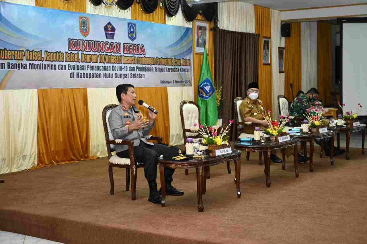 Kandangan, BARITO – Kepala Kepolisian Daerah Kalimantan Selatan (Kapolda Kalsel) Irjen Pol Nico Afinta,. melakukan peninjauan langsung tempat karantina khusus penanganan pencegahan Covid-19 yang berada di Kabupaten Hulu Sungau Selatan (HSS), Selasa (3/11/2020) pukul 13.10 Wita.
