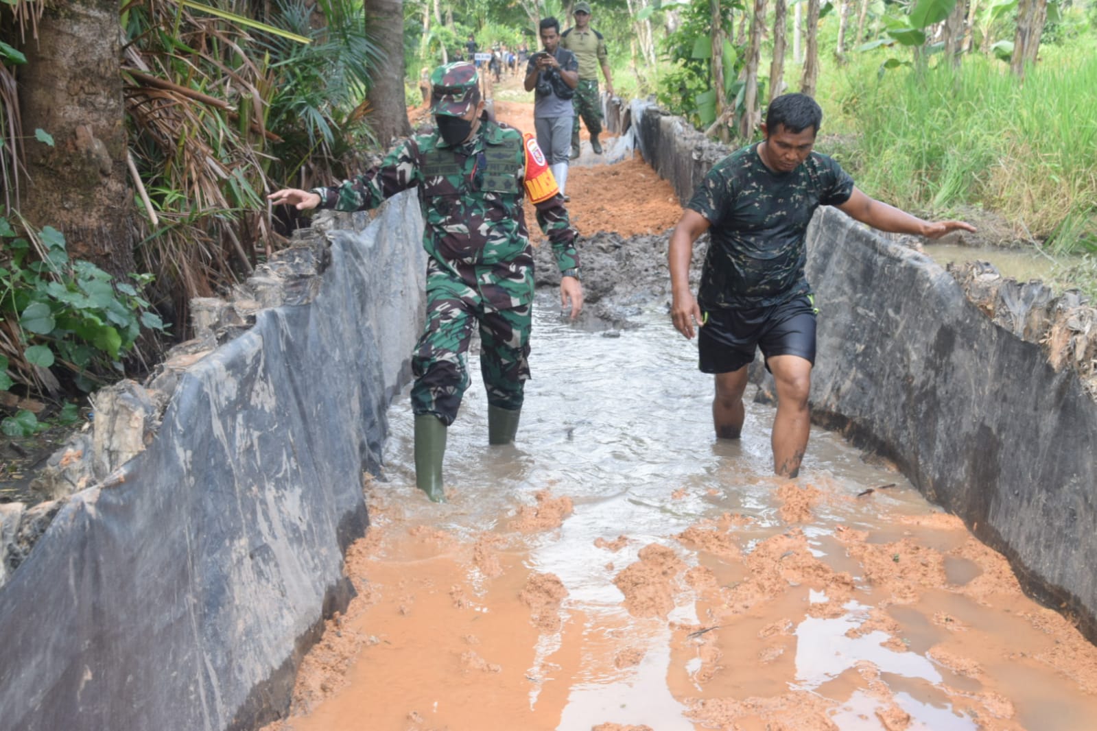 Meskipun harus berjalan kaki dan melewati jalan yang berlumpur, orang nomor satu di Komando Distrik Militer (Kodim) 1007/Banjarmasin itu terlihat semangat mendatangi lokasi pekerjaan dan memantau satu per satu sasaran fisik yang sedang dikerjakan oleh anggota satgas secara maraton.