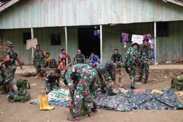 Personel Yonif 621/Manuntung dengan Kekuatan 1 SST di Pimpin langsung oleh Danyonif 621/Manuntung Mayor Inf Yoga Yastinanda, S.I.P. mendampingi Dandim 1002/Brb melaksanakan pendistribusian logistik ke Desa Datar Ajab dengan berjalan kaki karena akses menuju desa tersebut putus sehingga logistik pun yang akan didistribusikan dimasukkan kedalam rangsel personel Yonif 621/Manuntung