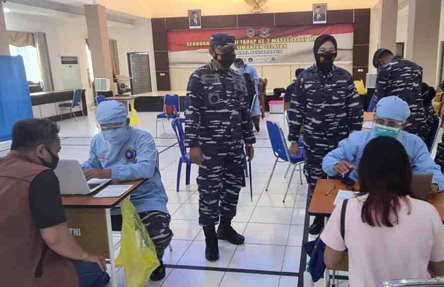 Dengan menerapkan protokol kesehatan yang ketat Tim Nakes Balai Pengobatan Lanal Banjarmasin melaksanakan vaksinasi kepada 89 orang pendaftar, dari semua pendaftar berhasil di vaksin dengan menggunakan vaksin jenis Sinovac.