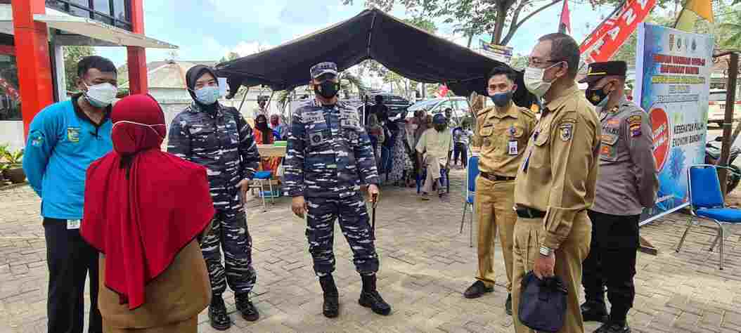 Saat meninjau Serbuan Vaksinasi, Komandan Lanal Banjarmasin Kolonel Laut (P) Herbiyantoko, M.Tr. Hanla didampingi Perwira stafnya melalui Dispen TNI AL – Lanal Banjarmasin Lettu (Laut) Adi mengatakan