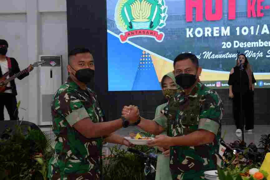 Banjarmasin,BARITO – Korem 101/Antasari merayakan hari ulang tahun ke-60 secara sederhana di Aula. Senin (20/12/2021).