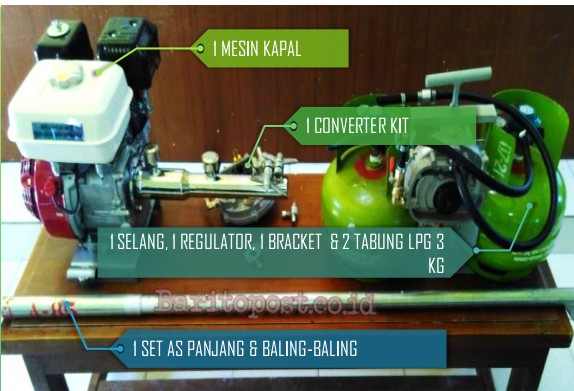 Nelayan yang sudah punya mesin bensin untuk ukuran kapal kecil maksimal 5 GT dan mesin 13 PK, maka itu akan diganti semua. Nelayan dapat 1 set termasuk tabung gas elpiji 3 Kg nya.