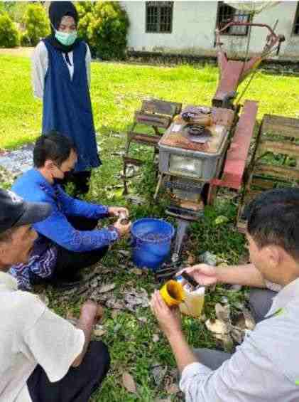 Dalam proses ini, kemiripan karakter Biodiesel yang dihasilkan dengan Solar dapat menggantikan peran Solar di hand tractor. Penggunaan Biodiesel jelantah dapat langsung digunakan pada mesin diesel tanpa tambahan bahan lain dan melibatkan jurusan otomotif dalam melakukan pengembangan Biodiesel. Al hasil kegiatan pun dilakukan di Desa Kunyit Kecamatan Bajuin Kabuaten Tanah Laut, provinsi Kalimantan Selatan belum lama tadi.