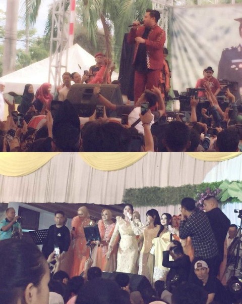 Pernikahan Aulia – Abi , berlangsung sangat meriah. Selain di dalam gedung , juga terpasang tenda tamu undangan bernuansa mewah lengkap dengan panggung hiburan. Sederet artis lokal hingga artis dangdut papan atas memeriahkan pesta perkawinan putri anggota DPR RI asal Kalsel yang juga dikenal sebagai pengusaha ini . Dari Nazar KDI , hingga Via Valen dan puncaknya Dewi Persik bergantian menghibur tamu undangan baik di panggung dalam dan luar gedung.