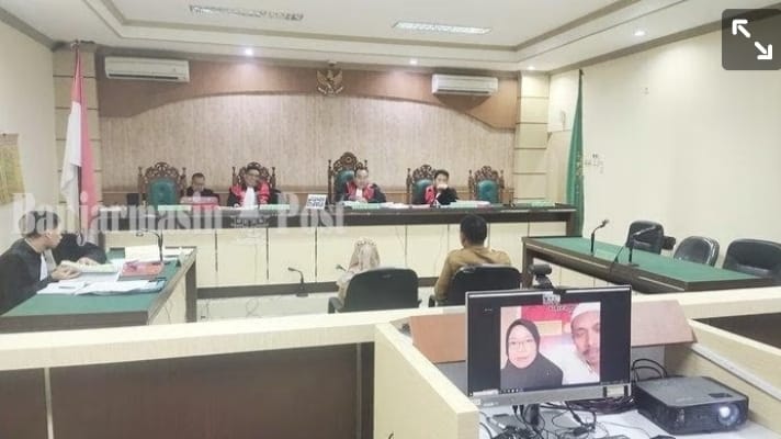Ahmad Kusairi sendiri, nampak mengikuti persidangan secara virtual, juga saksi Fathul Jannah mantan ketua UPK Rantau Badauh yang merupakan terpidana perkara yang sama.
