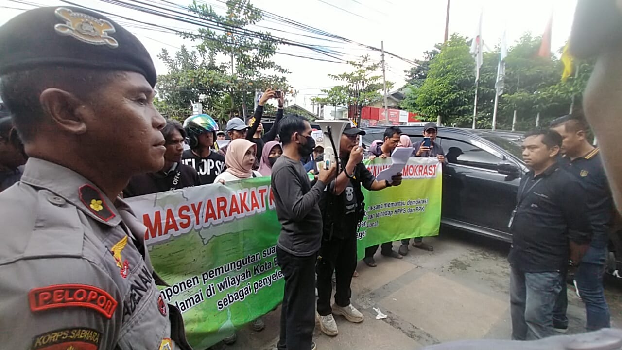 Banjarmasin, BARITOPOST.CO.ID – Puluhan massa dari Aliansi Masyarakat Kota Banjarmasin Pejuang Demokrasi (AMKPD), Sabtu (24/2) pagi, nampak memenuhi halaman Kantor KPU Banjarmasin.