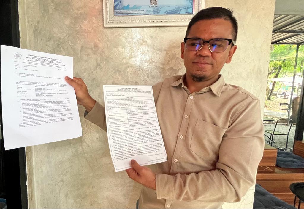 Pelaksanaan lelang eksekusi ini diperantarai Kantor Pelayanan Kekayaan Negara dan Lelang (KPKNL) Banjarmasin berdasarkan pengajuan permohonan oleh kreditur atas nama Aristanti Yunita Sri Yudhitaningsih karena terjadi wanprestasi atau kelalaian debitur Deni Agung Prasetiyo.