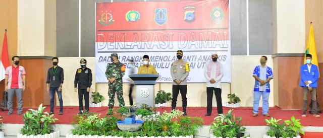 Selanjutnya seluruh peserta Deklarasi Bersama mengucapkan komitmen bersama untuk menolak unjuk rasa anarkis dan menjaga persatuan dan kesatuan NKRI, tidak terpengaruh dengan berita-berita hoax yang memprovokasi, menciptakan situasi yang kondusif di Kabupaten HSU, melaksanakan protokol kesehatan selama Pandemi Covid-19, mendukung Polri dan TNI menindak pelaku kerusuhan atau anarkis dalam unjuk rasa.
