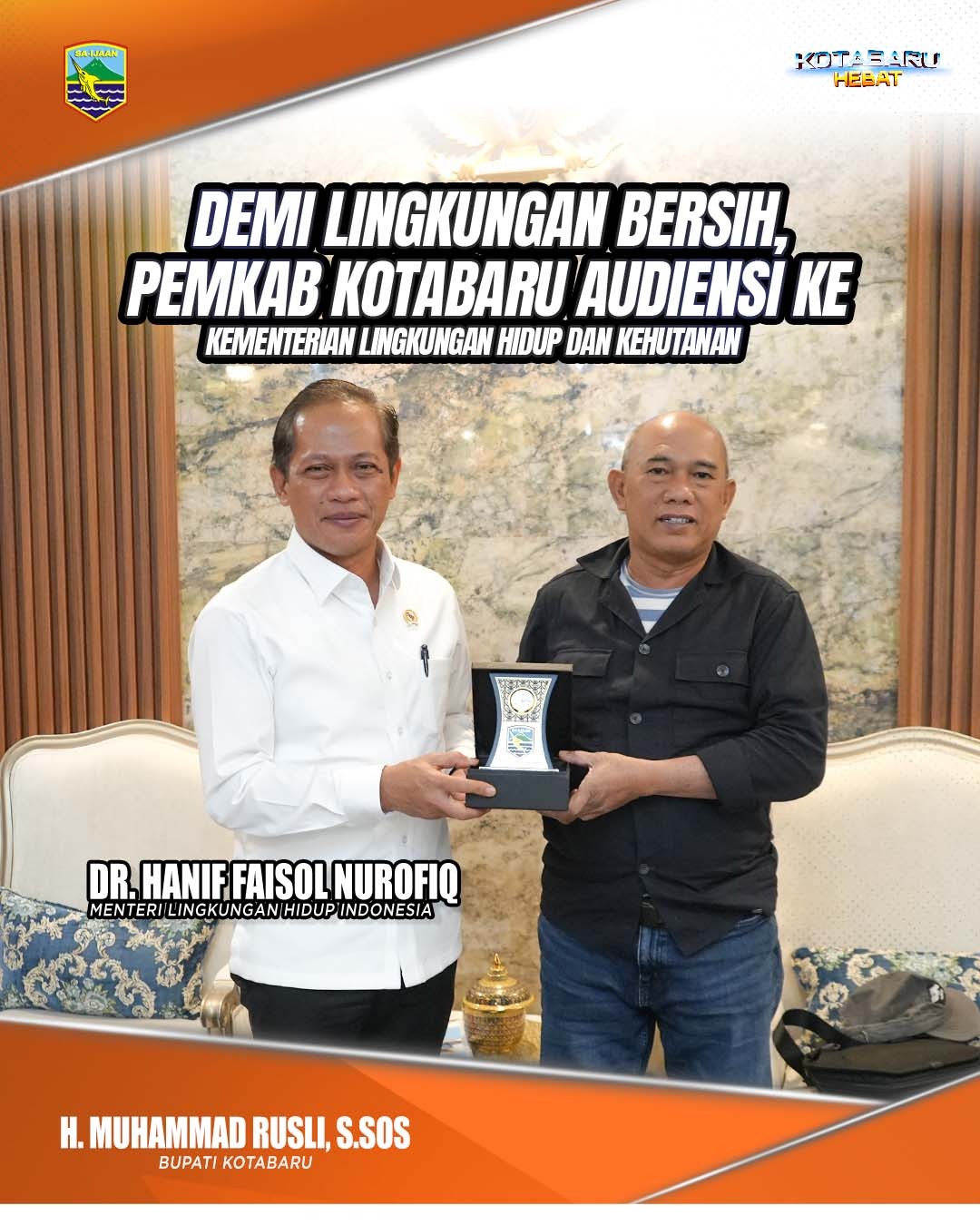 Keseriusan Bupati Kotabaru dalam penanganan sampah disambut baik oleh Menteri Lingkungan Hidup DR. Hanif Faisol Nurofiq beserta jajaran di ruang kerja Menteri Lingkungan Hidup di Jakarta.