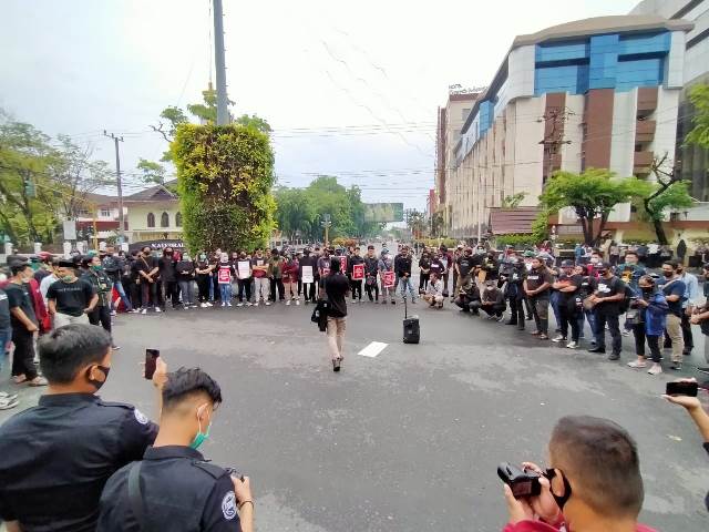 “Kalau informasi yang kita dapat, massa yang menggelar aksi ini ada 100-san dan para massa ini sebelum ke lokasi aksi, terlebih dulu berkumpul di Kawasan Taman Kamboja Banjarmasin, setelah itu baru menuju Simpang Empat Hotel A Banjarmasin,” terangnya.