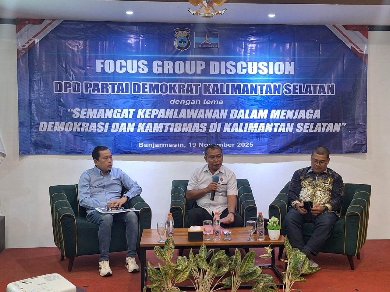 Karena itu partai besutan mantan Presiden RI H Susilo Bambang Yudhoyono kemudian menggelar Focus Group Discusion (FGD), yang mengusung tema “Semangat Kepahlawanan Dalam Menjaga Demokrasi dan Kamtibmas di Kalimantan Selatan” bertempat di Summer BnB Hotel di Jalan Veteran Banjarmasin, Rabu pagi (19/11/2025).