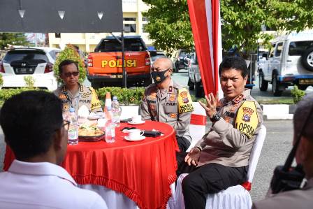 “Dengan coffee morning ini kita akan lebih mudah melakukan koordinasi tentang Situasi Kamtibmas di Kalimantan Selatan pada situasi Pandemi Covid-19 saat ini,″ tutur Kapolda Kalsel Irjen Pol. Dr. Nico Afinta, S.I.K., S.H., M.H. saat memimpin Coffee Morning dan lanjutkan Anev Mingguan, Selasa (11/8/2020) pukul 08.00 Wita.