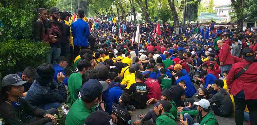 Komitmen mahasiswa setia menunggu Perppu dibuktikan saat hujan deras yang mengguyur Banjarmasin tak menggser kawanan demonstran yang mewakili suara rakyat tersebut.