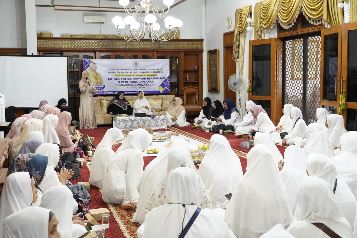 Sosialisasi Perda tersebut dihadiri puluhan perempuan yang tergabung dalam Majelis Taklim Pecinta Alquran se-Kota Banjarmasin, yang berlangsung khidmat dan penuh antusias, ditandai dengan partisipasi aktif para peserta dalam menyimak materi dan berdiskusi.