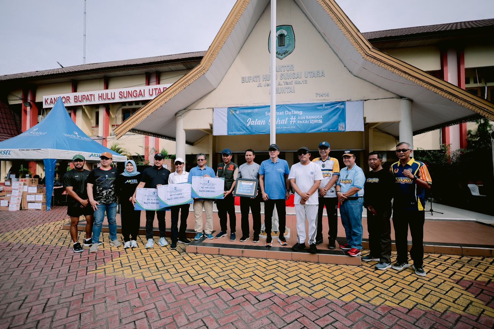 Amuntai, BARITOPOST.CO.ID – Sebagai bentuk kepedulian terhadap masyarakat yang terdampak bencana banjir, Bank Kalsel menyalurkan bantuan dukungan senilai total Rp145 juta kepada Pemerintah Kabupaten Hulu Sungai Utara (HSU). Penyerahan bantuan tersebut dilaksanakan di sela kegiatan jalan santai bersama Bupati Hulu Sungai Utara #ASNBanggapakaiQRIS yang berlangsung di Amuntai, pada hari Jumat, 9 Januari 2026.
