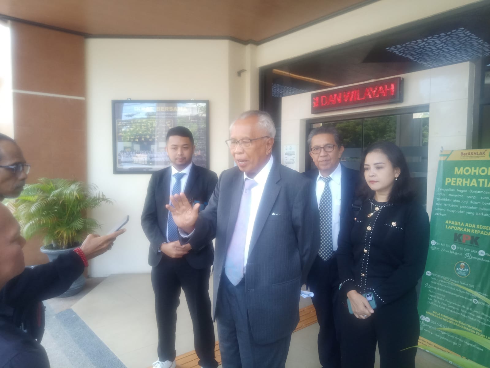 Prof OC Kaligis, SH MH usai mendatangi PTSP PN Banjarmasin mempertanyakam petikam putusan banding perkara korupsi di bank plat merah gubung payung Banjarbaru.