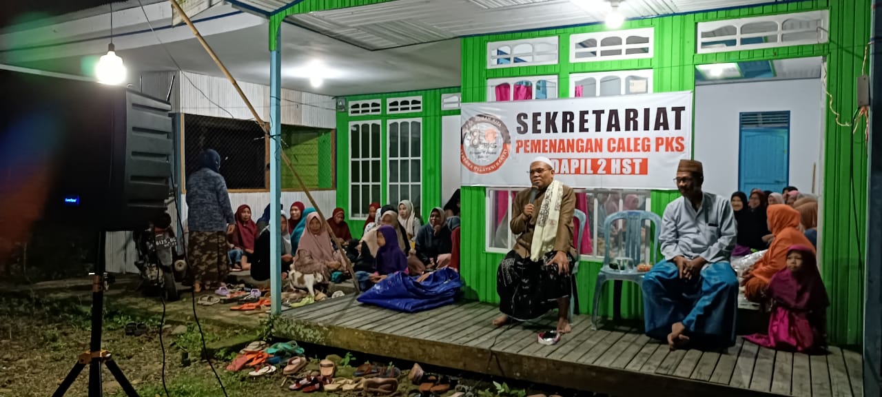 Kegiatan diduga berkedok ceramah agama yang digelar salah satu caleg sebelum dibubarkan oleh Panwaslu Kecamatan Batu Benawa Kabupaten HST.(foto : yufanata/brt)