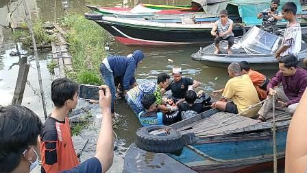 Banjarmasin, BARITO – Warga perairan sungai Yapahut Jalan Soetoyo S RT 27 dekat simpang 4 Pelabuhan penumpang Trisakti Kelurahan Telaga Biru Banjarmasin Barat digegerkan dengan hilangnya seorang juru parkir setempat bernama Yuli (40), Jumat (9/7/2021) pagi. Setelah dicari warga sekitar ternyata korban tenggelam di sungai setempat diduga saat mandi di Batang.
