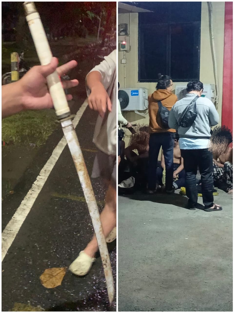 Kejadian bermula ketika aksi mereka dianggap meresahkan warga sekitar. Beberapa warga yang curiga kemudian mengamankan kelompok remaja itu dan melakukan penggeledahan. Dari situ ditemukan senjata tajam yang dibawa oleh salah satu pelaku.