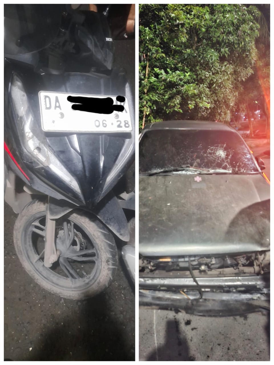 Foto mobil sopir Starlet saat berada di Alalak Babang, sementara motor Vario juga turut ditahan kepolisian, Minggu (18/1/2026) dini hari. (foto: istimewa)