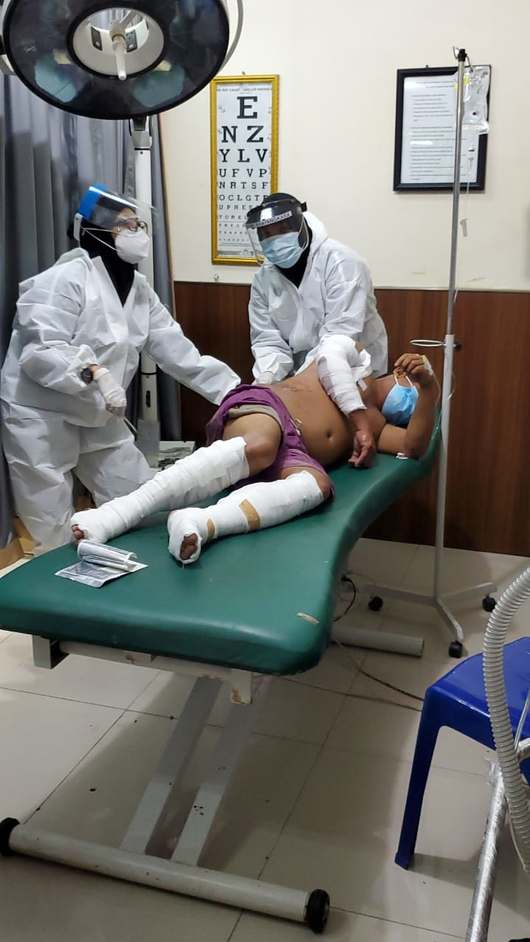 Setelah itu pelaku kabur lagi kemudian pelaku menceburkan lagi ke bawah rumahan. Lalu dikejar warga setempat dan akhirnya tertangkap oleh warga setempat. Selanjutnya pelaku dibawa ke RS Bhayangkara karena bagian tangan kanan, bagian punggung kanan dan kedua kaki korban mengalami luka bakar.