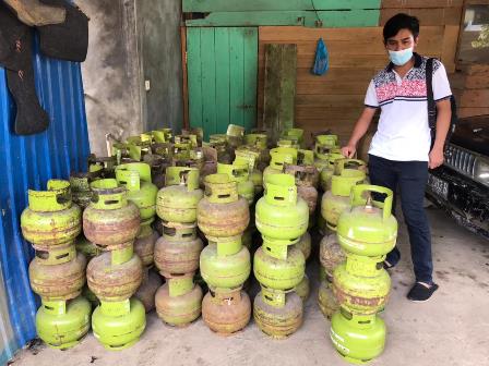 Petugas menemukan gas LPG 3 Kg sejumlah 115 buah tabung kosong dan 5 tabung berisi yang disimpan didalam toko oleh pemiliknya.