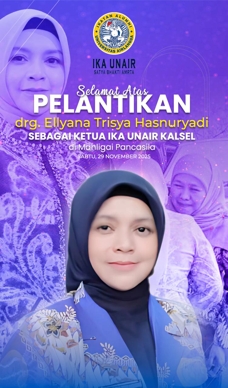 Bersama 40 alumni Unair dari berbagai angkatan dan jurusan, Ellyana akan dikukuhkan sebagai pengurus wilayah IKA Unair Kalsel oleh Ketua Pengurus Pusat IKA Unair di Mahligai Pancasila, Sabtu (29/11).