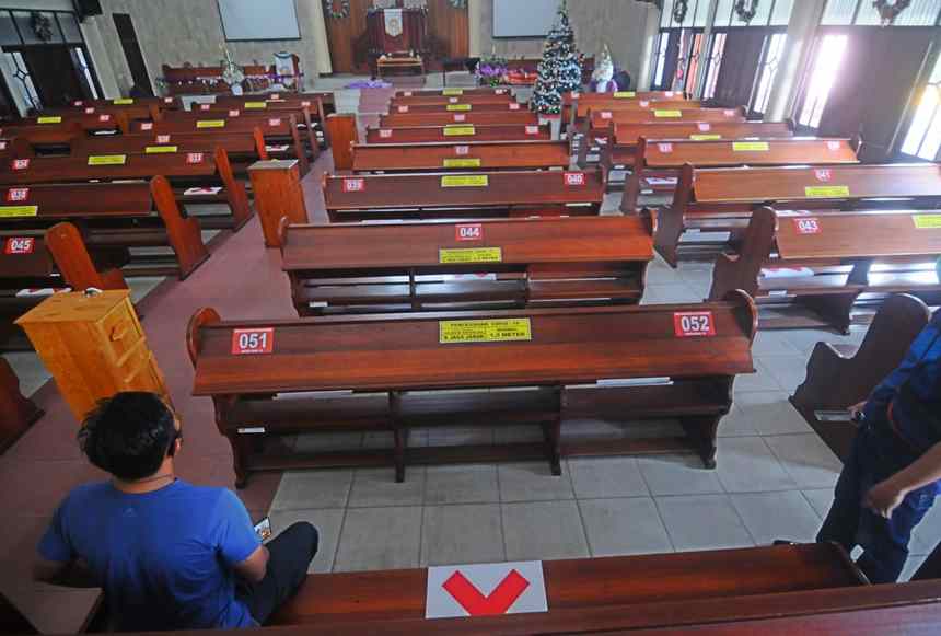“Sebelum ibadah maupun sesudah ibadah kami lakukan penyemprotan disinfektan, untuk sirkulasi udara juga kami perhatikan dengan menambahkan saniter spray, tidak lupa pemeriksaan suhu tubuh dan cuci tangan,” ucapnya.