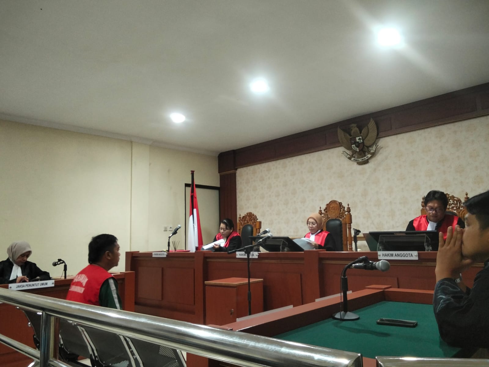 Rendy saat mendengarkan vonis majelis hakim pada sidang lanjutan di PN Banjarmasin (foto Filarianti)